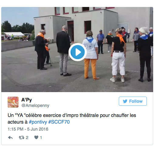 Depuis de nombreuses années, j’accompagne des groupes très divers dans l’écriture et le montage de saynètes, de spectacles complets. Le défi, ici, était de réaliser la co-écriture, la mise en scène, les répétitions en 5 séances seulement.