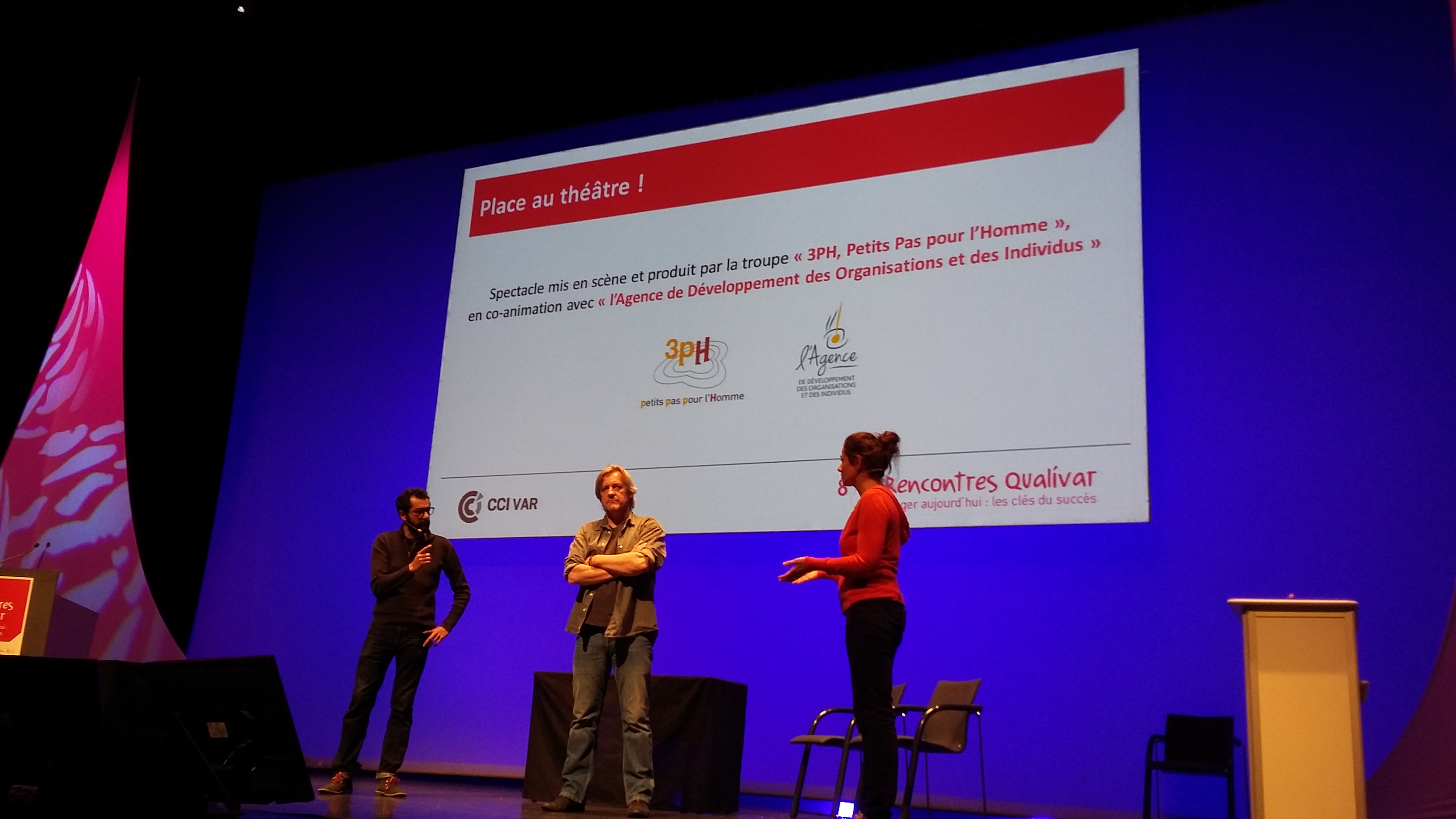 Jeudi dernier, les comédiens de 3pH ont présenté un spectacle forum sur le management des ressources humaines aux professionnels du tourisme présents pour les 8èmes Rencontres Qualivar à la CCI du Var à Toulon.