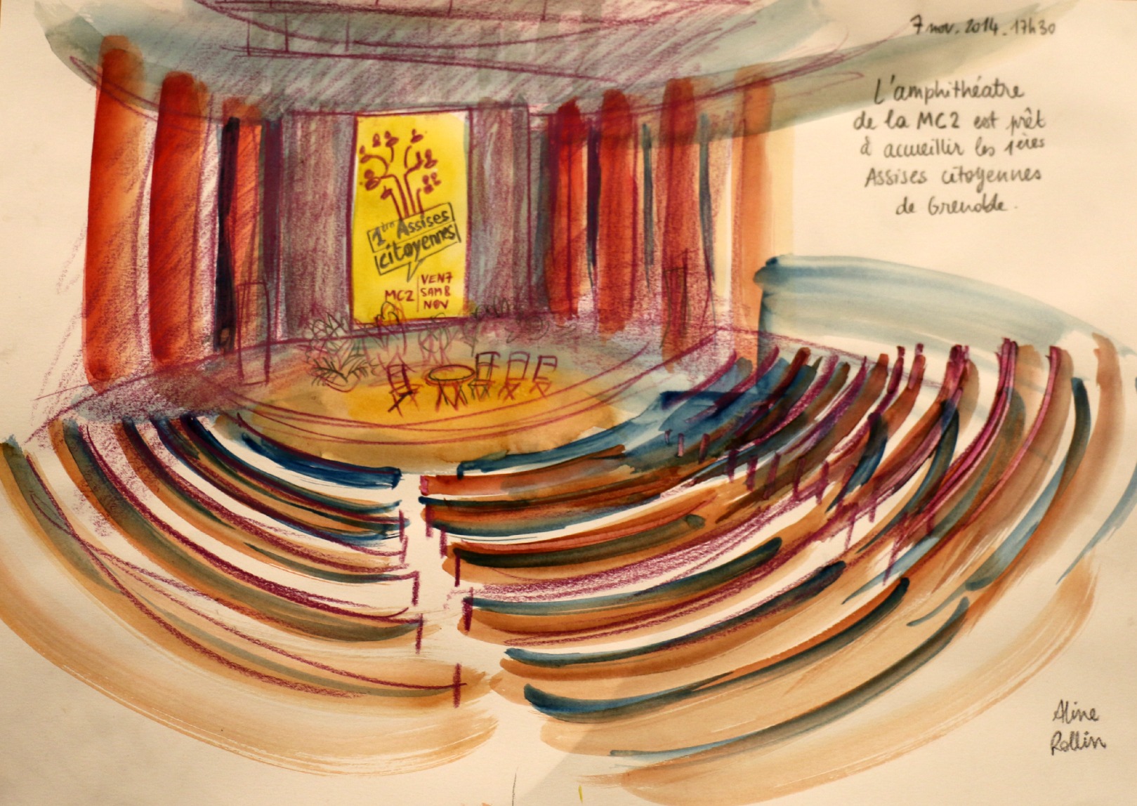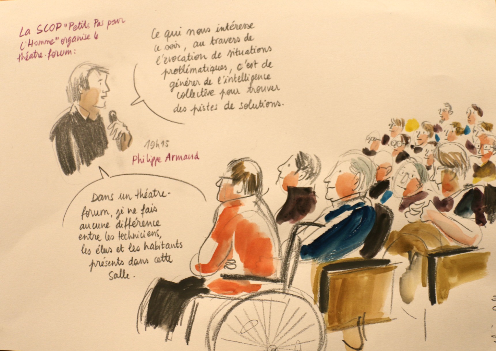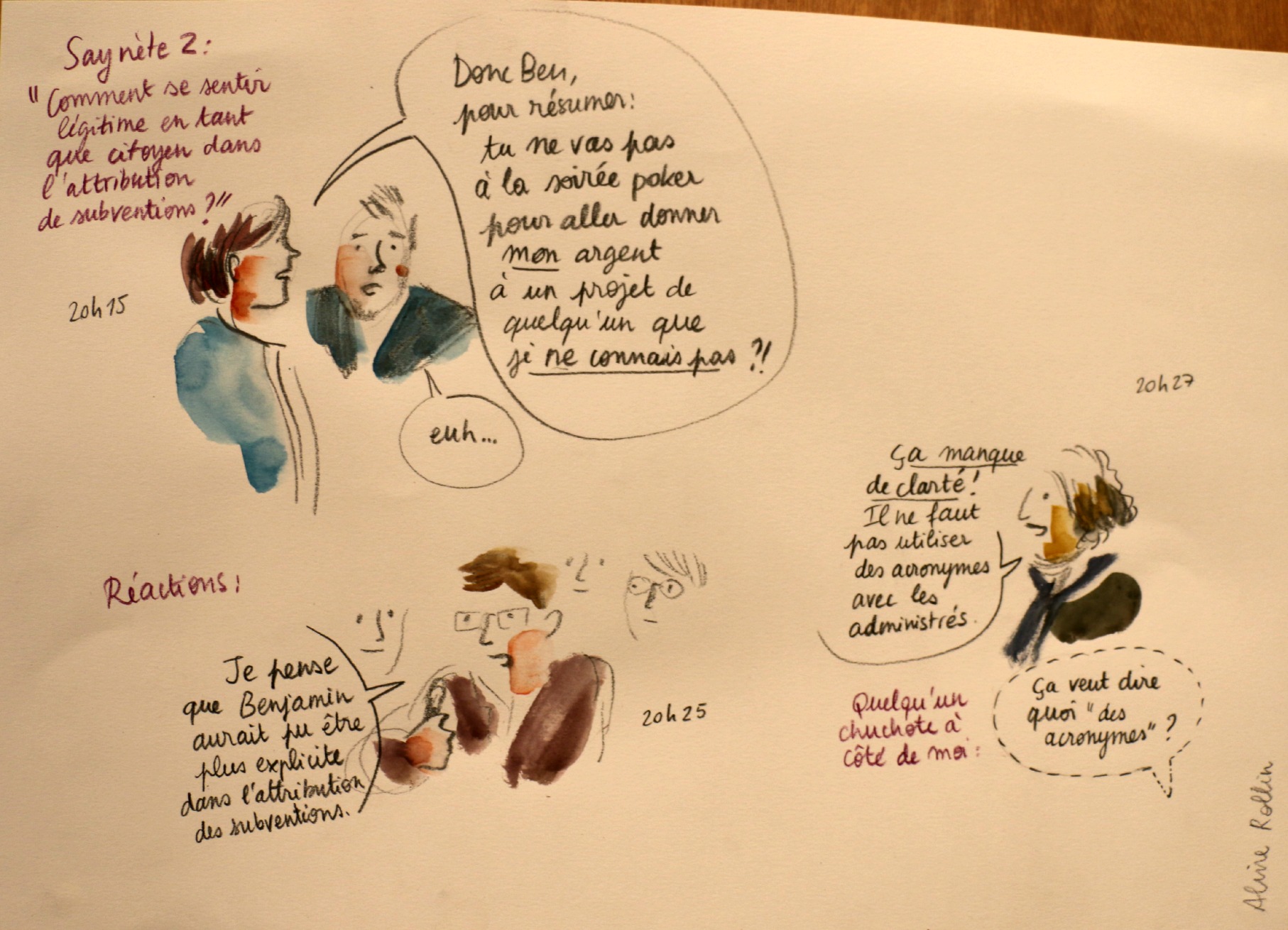 L’illustratrice Aline Rollin était présente pour immortaliser les échanges à l’aide de coups de crayon et de touches d’aquarelle.