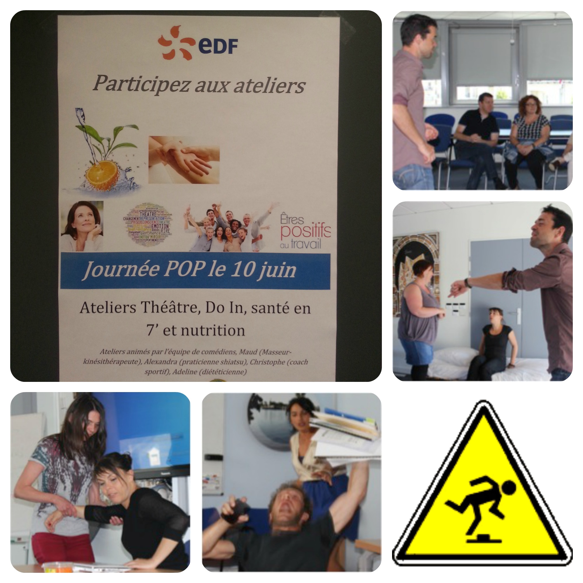 Lors de ces journées POP, EDF a fait le choix de sensibiliser ses collaborateurs aux chutes de plain-pied en utilisant le théâtre forum.